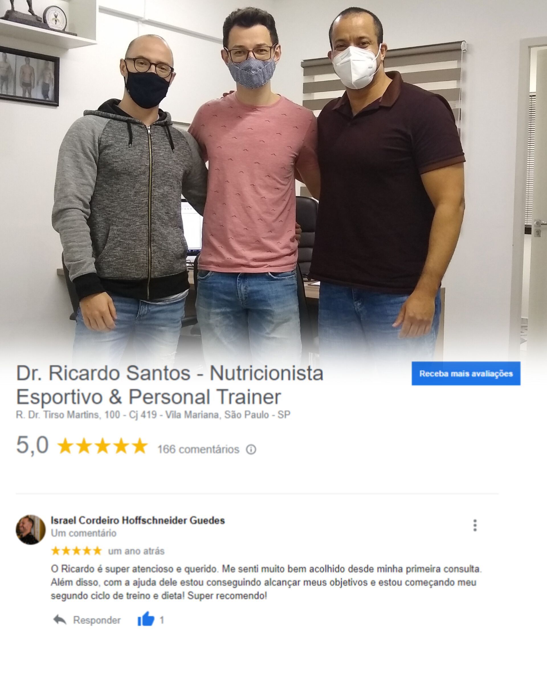 O PROF. DR. RICARDO SANTOS É O NUTRICIONISTA esportivo e PERSONAL MELHOR AVALIADO no google!